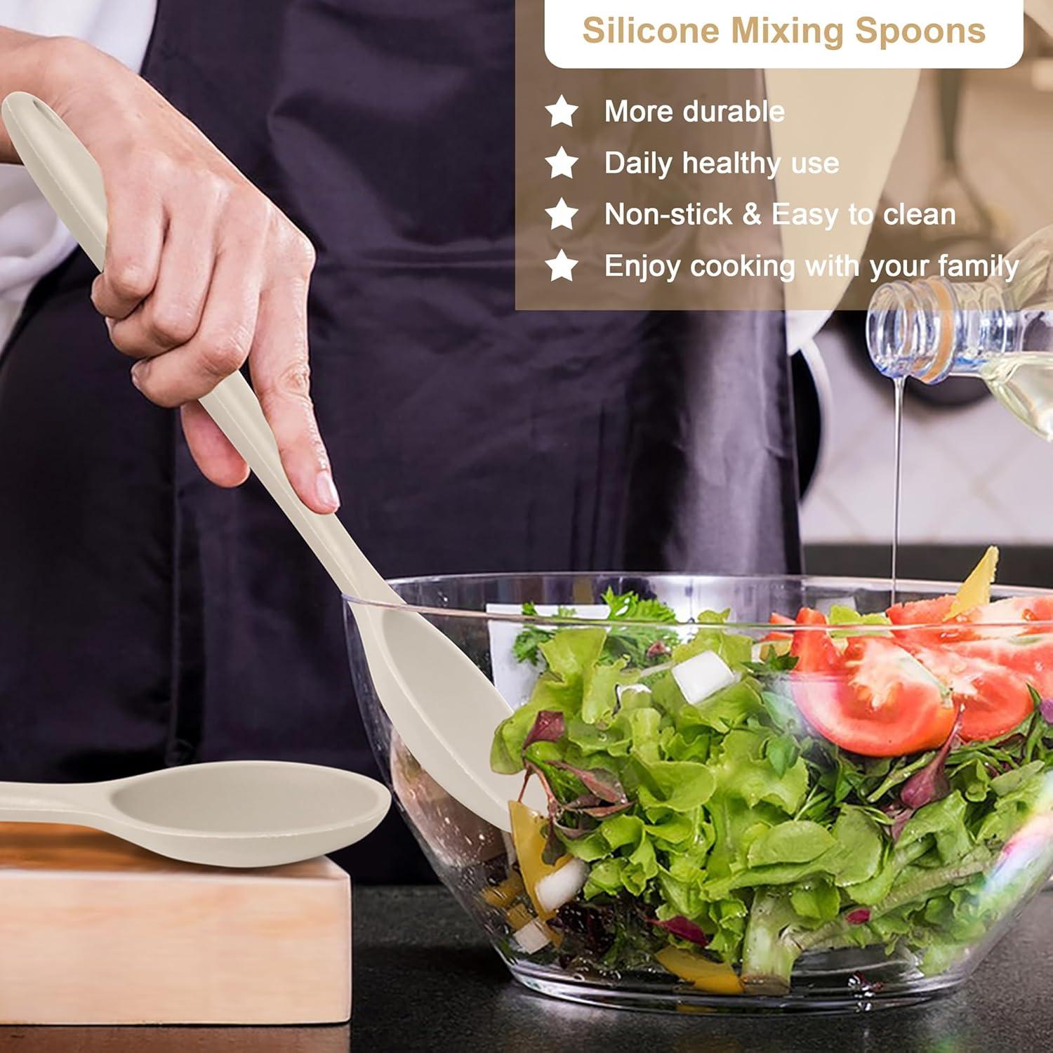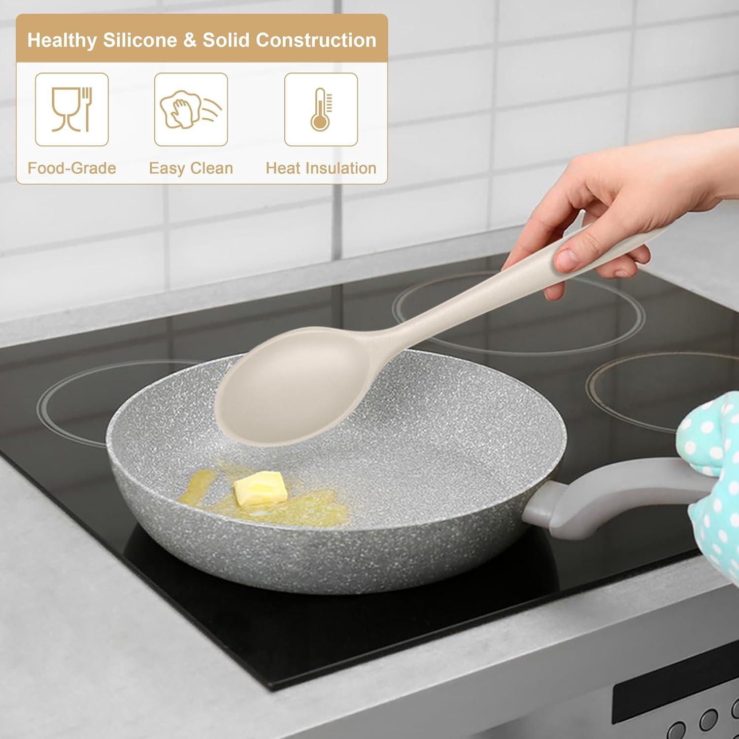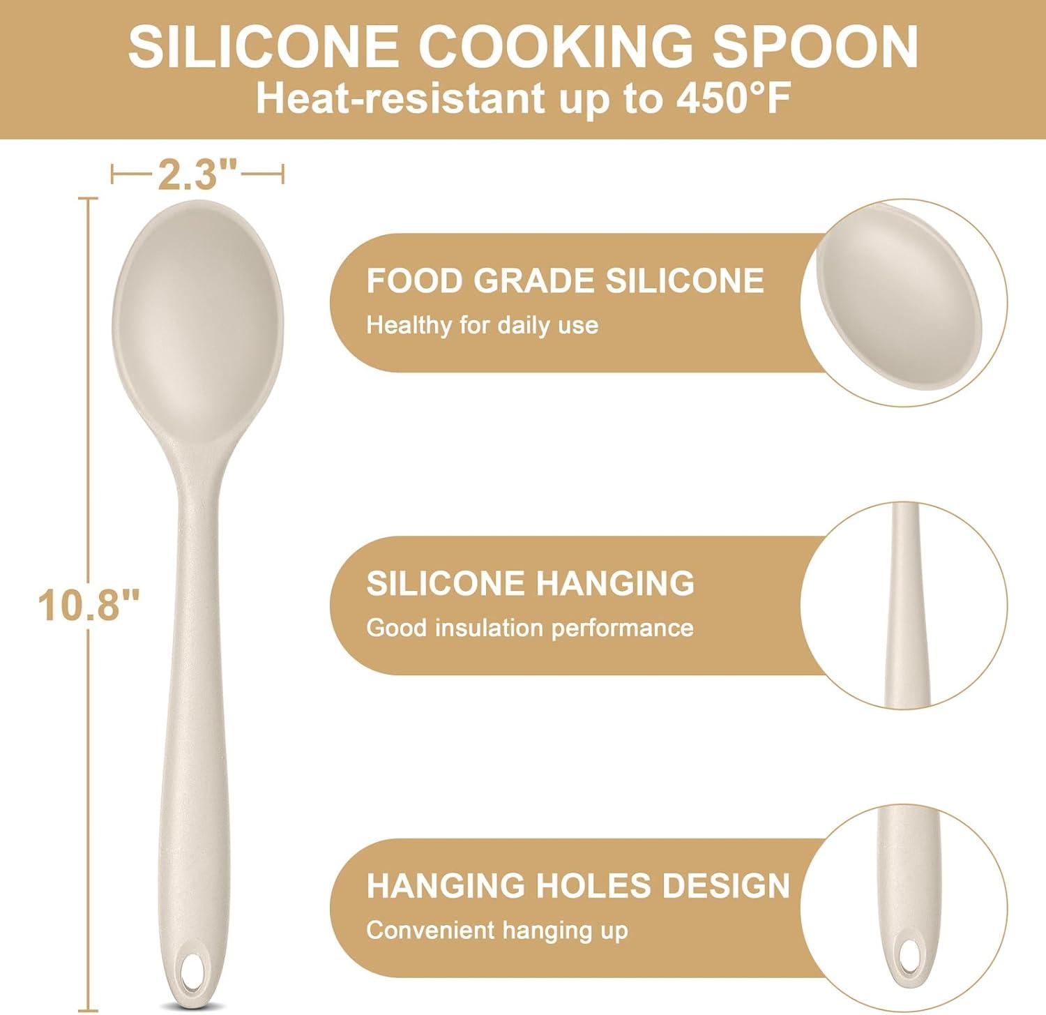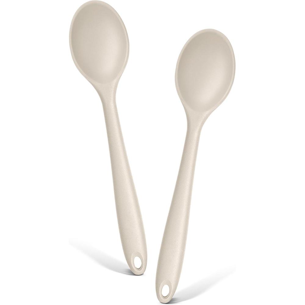 ESSENTIAL KITCHEN TOOL: Set of 2 spoons, Size: 10.8″x 2.3″, The smooth silicone head will not scratch the coating, Can better protect your pan and extend its service life, Perfect for use with nonstick cookware and bakeware, It is an ideal tool for family chefs and restaurant chefs