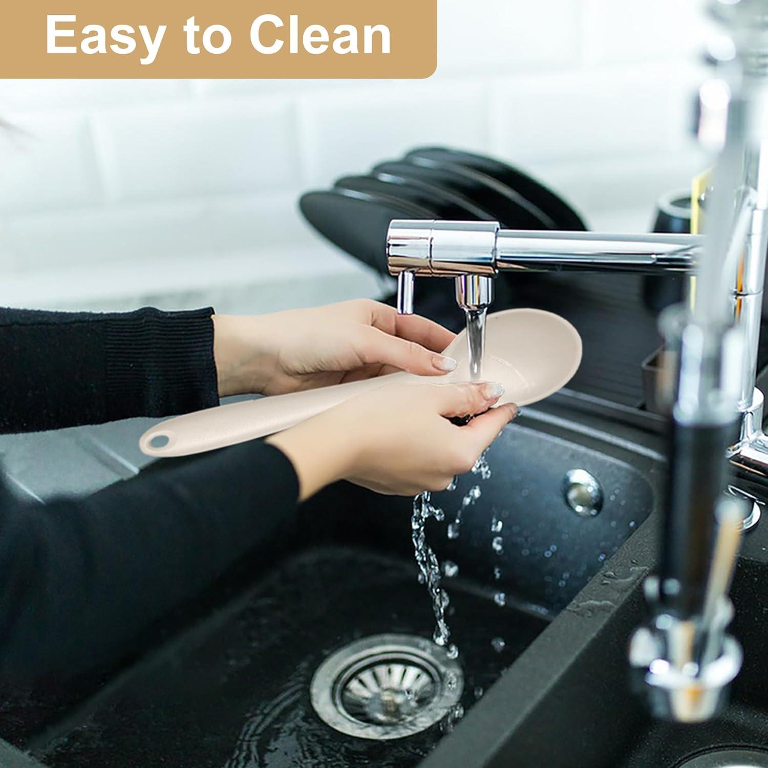 EASY TO CLEAN & STORE: Silicone spoon surface is smooth and easy to clean, Wipe with hot water can easily remove excess food residue, Dishwasher safe to make cleaning a breeze, Circular hanging hole design can be hung for storage and makes it easier to dry