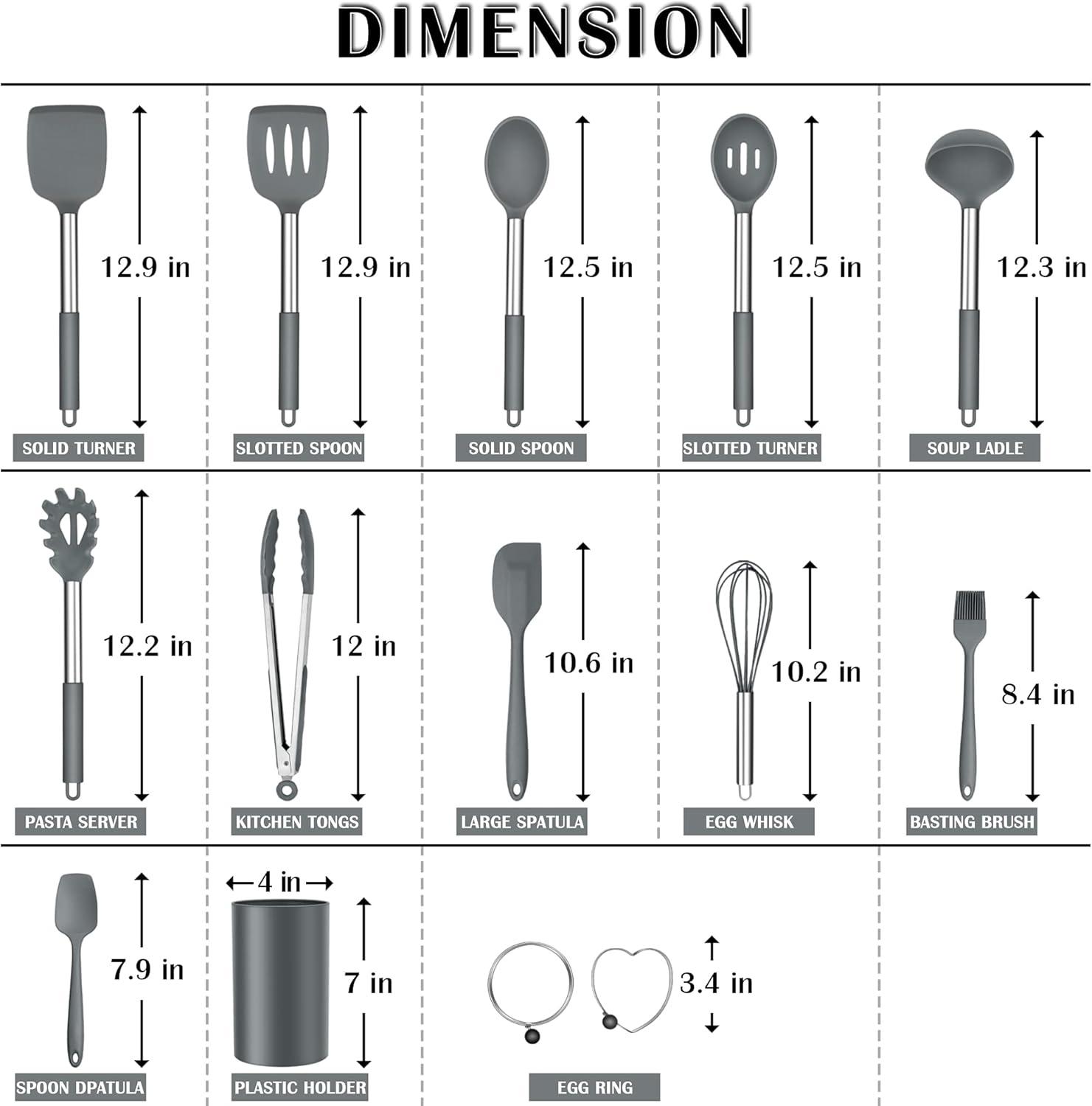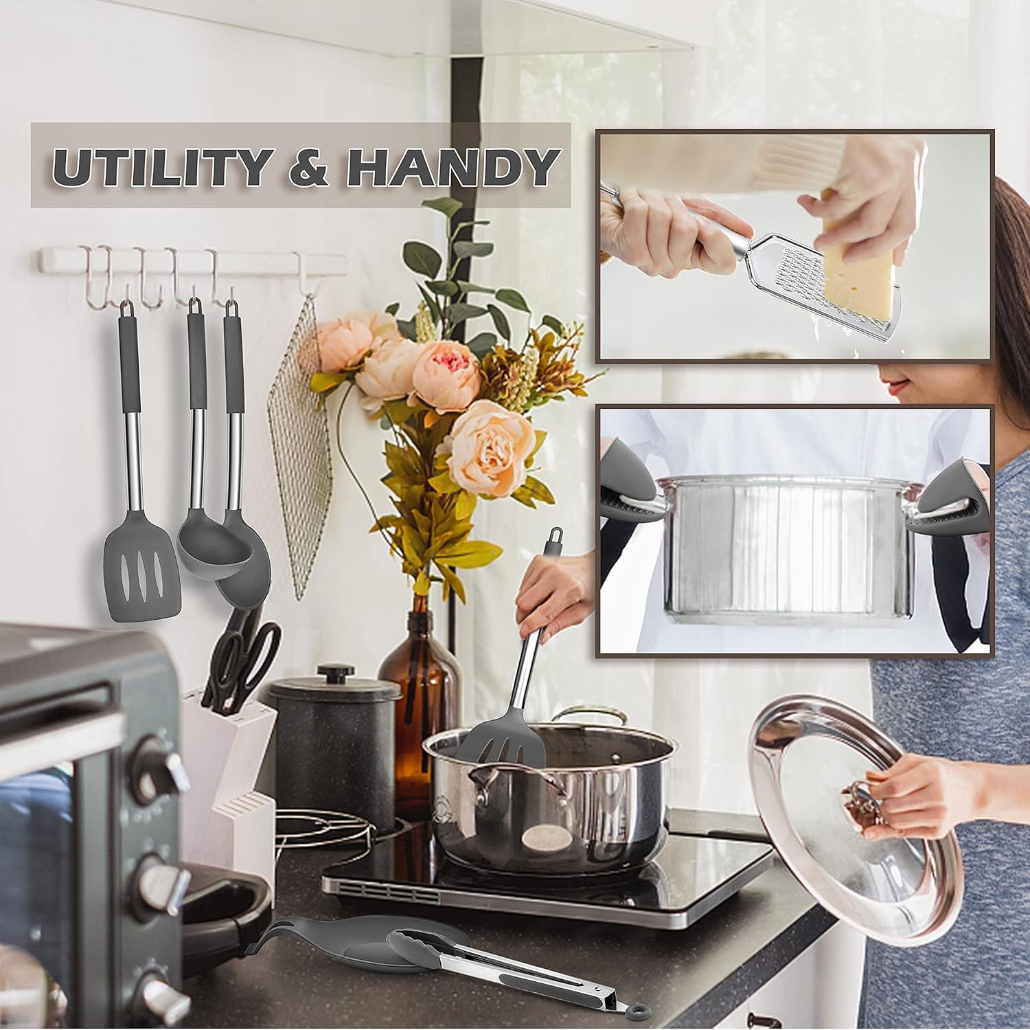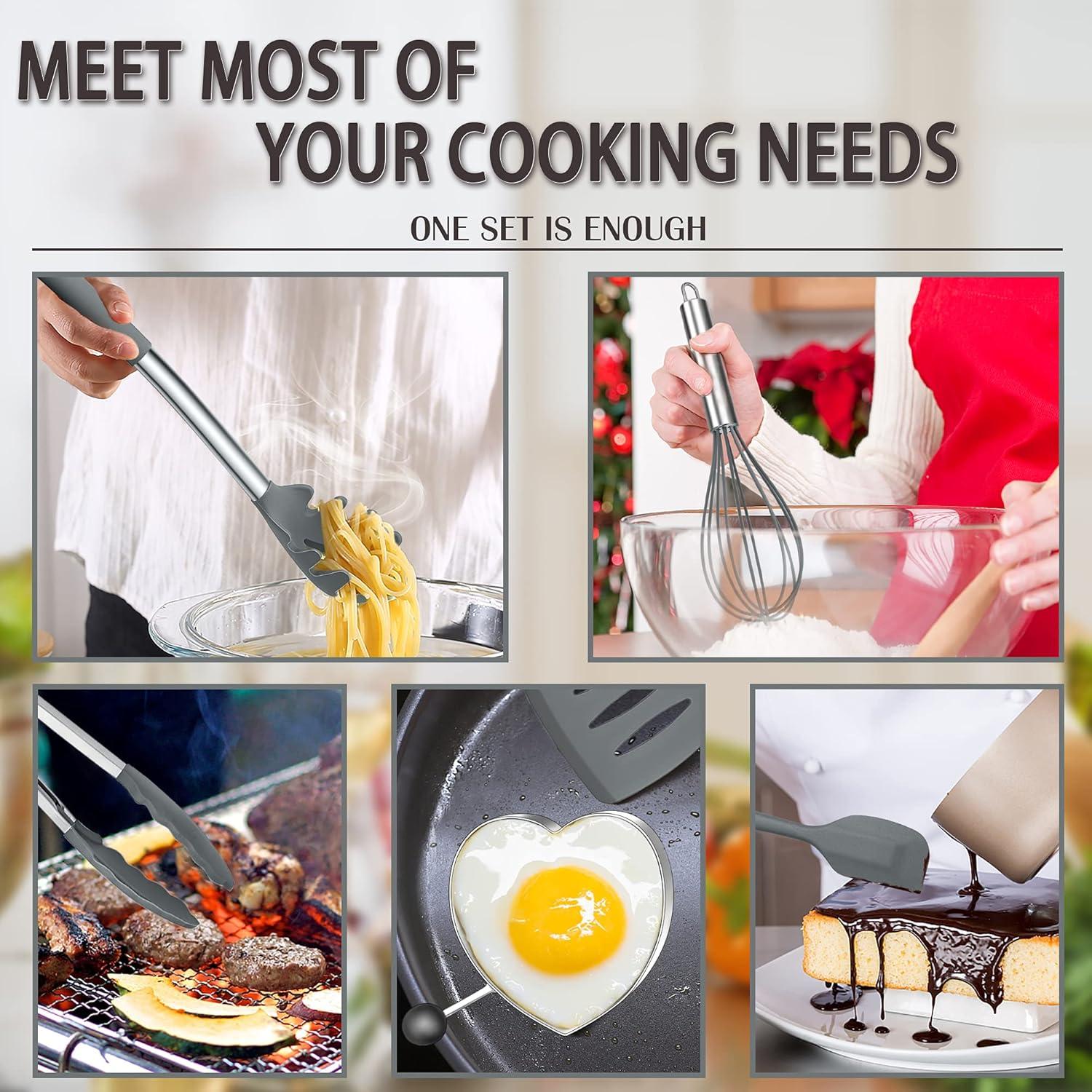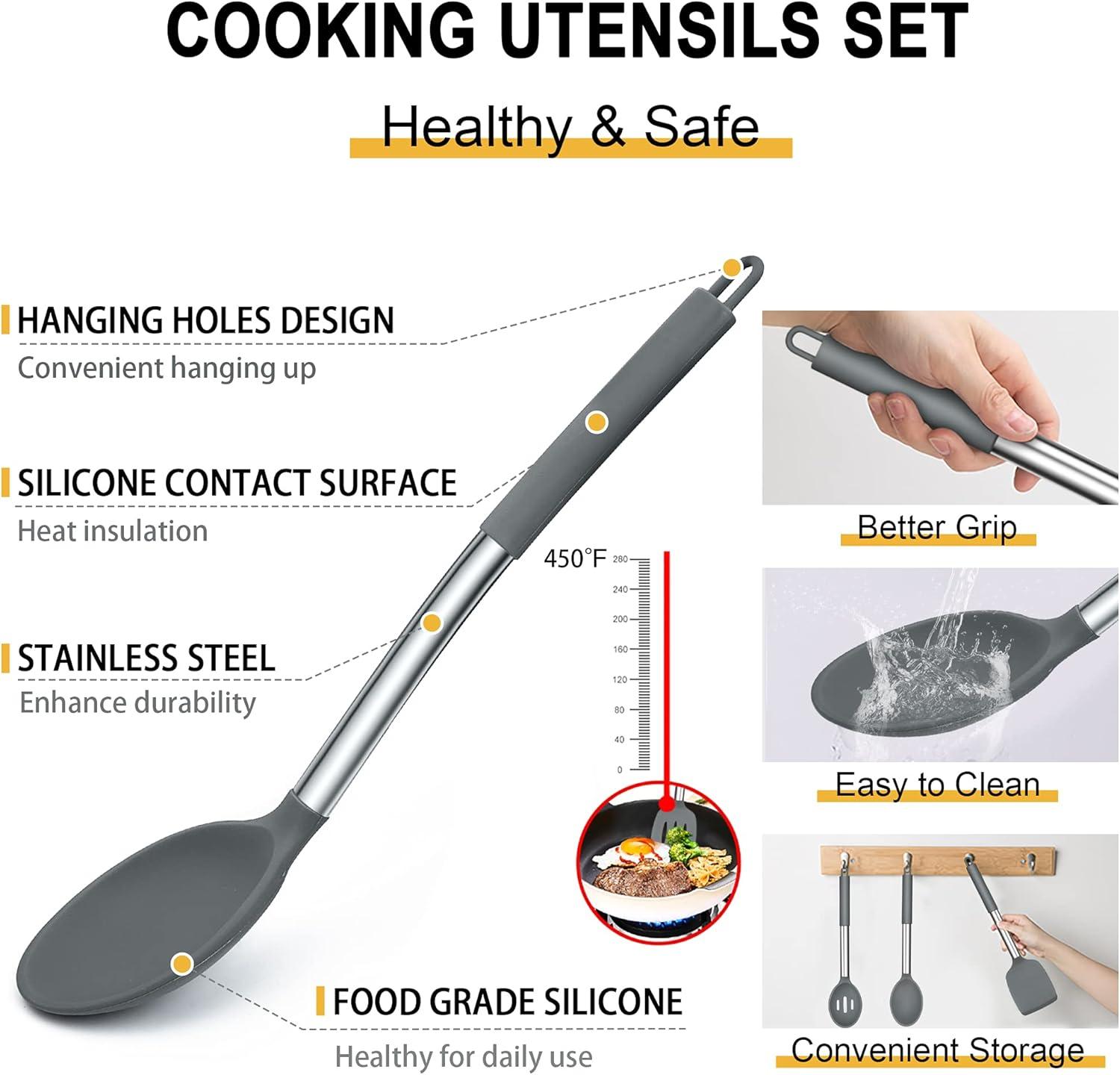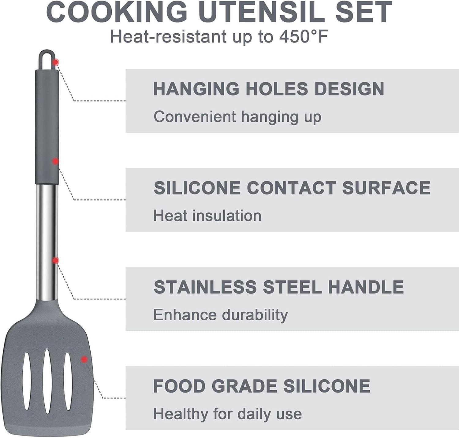 FOOD GRADE KITCHEN UTENSILS SET: Made of premium food-grade silicone to ensure no toxic substances release into food; Heat resistant up to 450°F, No worry about burning or melting during cooking, Healthy and durable for daily cooking use
