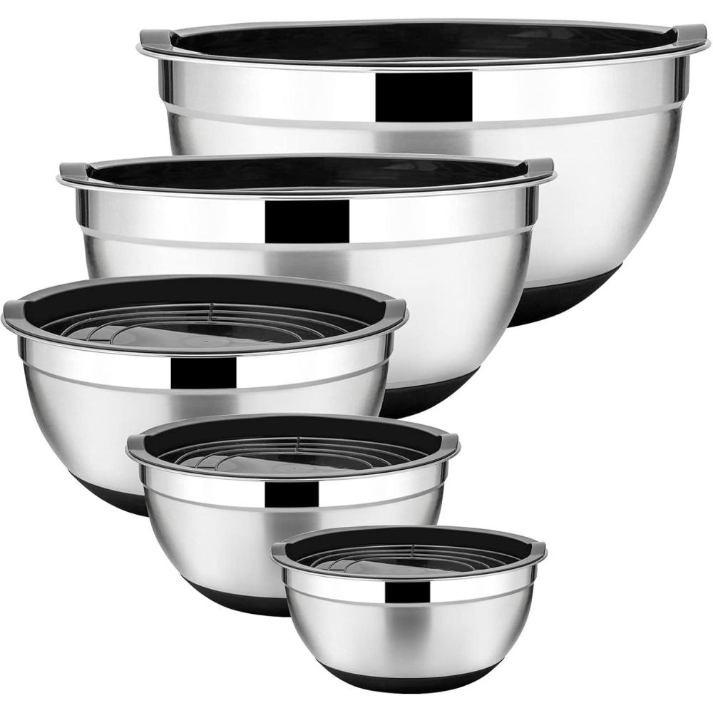 MULTI-USE – 5 different sizes of 1/1.5/2.5/3.5/7 quarts allows you to measure, mix, prepare and serve food all in one kitchen tool, Perfect for mixing, baking, cooking, serving or even as storage bowls, Ideal gift for Christmas, holidays, housewarming and other special occasions
