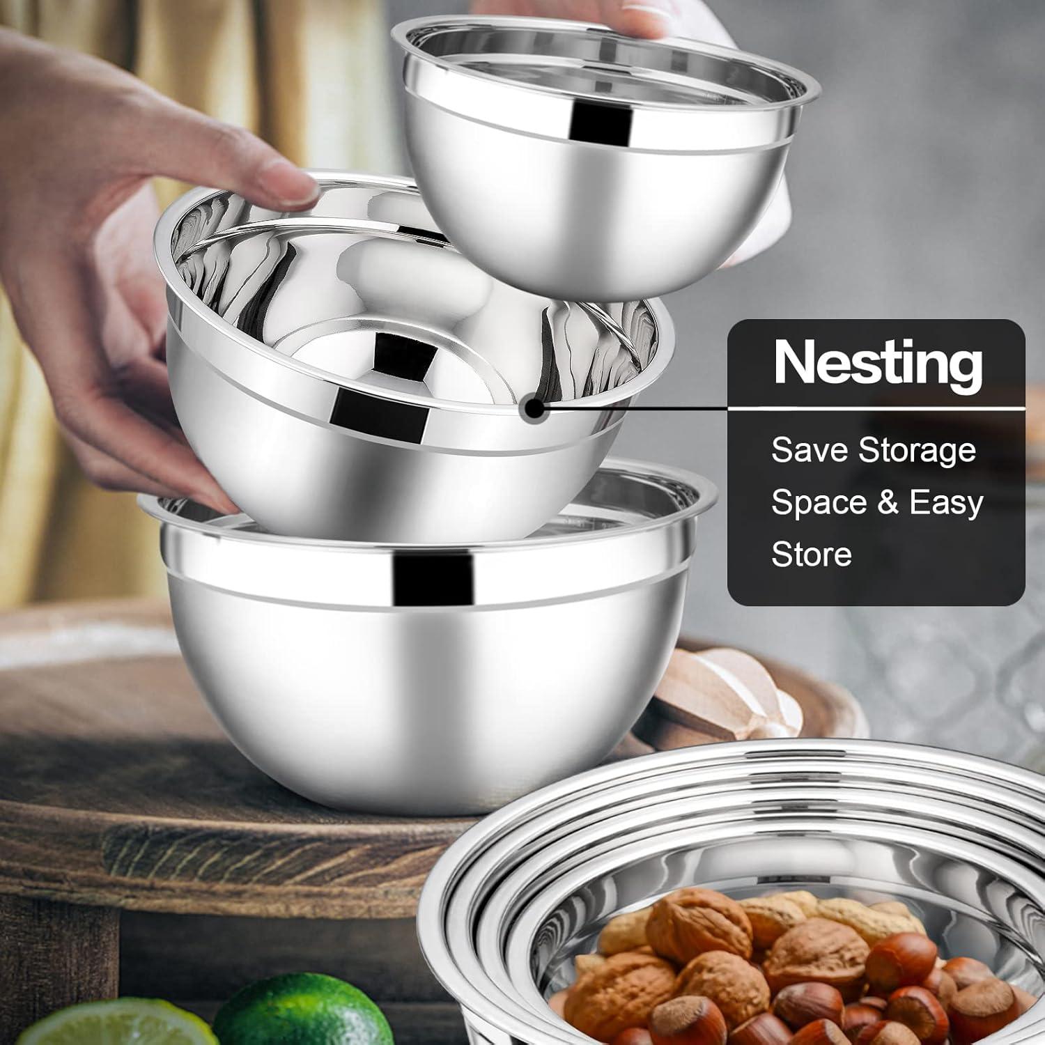 SOLID & STURDY STAINLESS STEEL- Made of premium pure stainless steel ensure better rust-proof , Anti-corrosion and good abrasion resistance, High hardness and high toughness steel, Not easy to warp or break, Superior to glass/plastic mixing bowl, Durable for everyday use