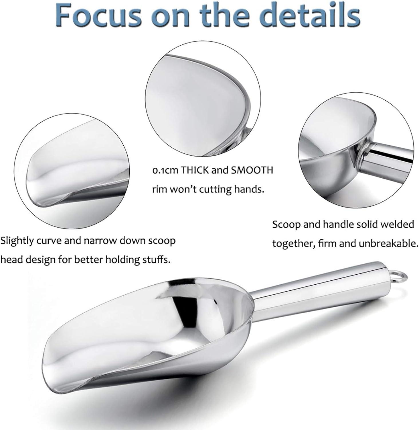 HIGH QUALITY- Made of premium food-grade stainless steel, Non-toxic and high hardness to ensure better rust proof and corrosion resistance, Superior to plastic/aluminum ice scoop, Healthy and durable for daily use, Dishwasher safe to make clean a breeze