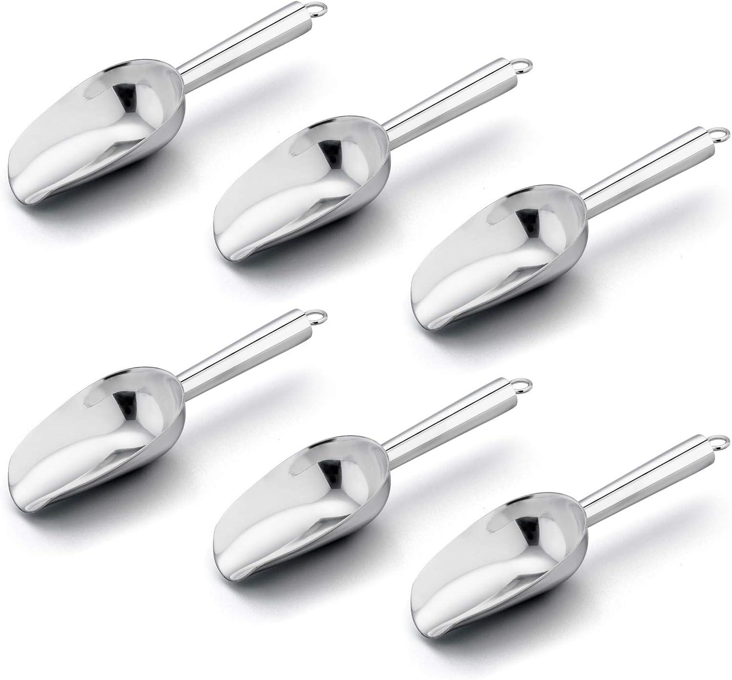 E-far Mini Metal Scoop, 3oz Stainless Steel Ice Scooper for Kitchen Freezer Bar Wedding Party, Multipurpose for Candy/Flour/Pet Dry Food, Utility Small Scoop for Jar Canister, Dishwasher Safe, Silver(Black)