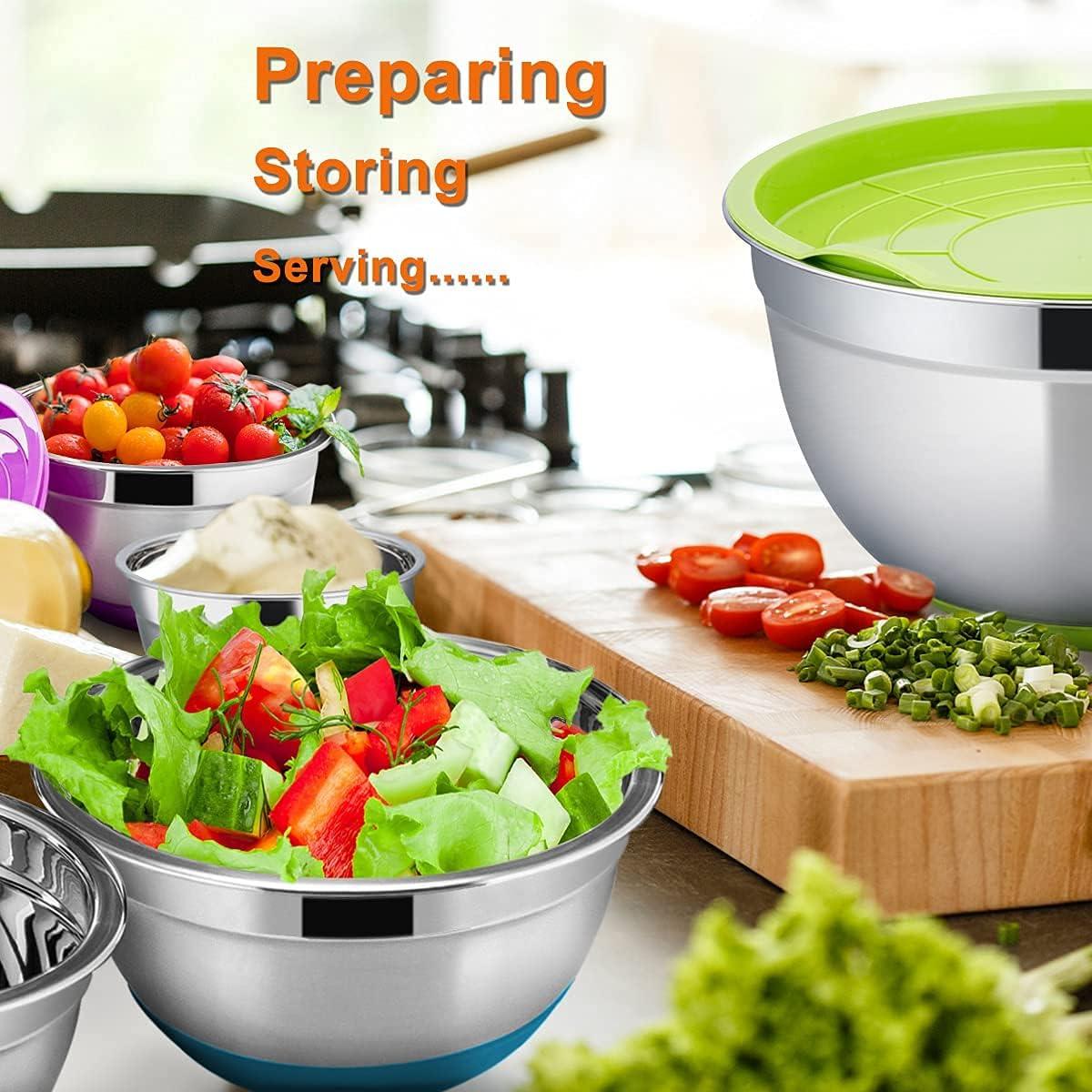 HEALTHY & SOLID STAINLESS STEEL- Made of high quality stainless steel to ensure better rust-proof and wear-resisting, High hardness steel with solid construction, Not easy to warp or break, Superior to glass/plastic mixing bowl, Durable and healthy for daily use