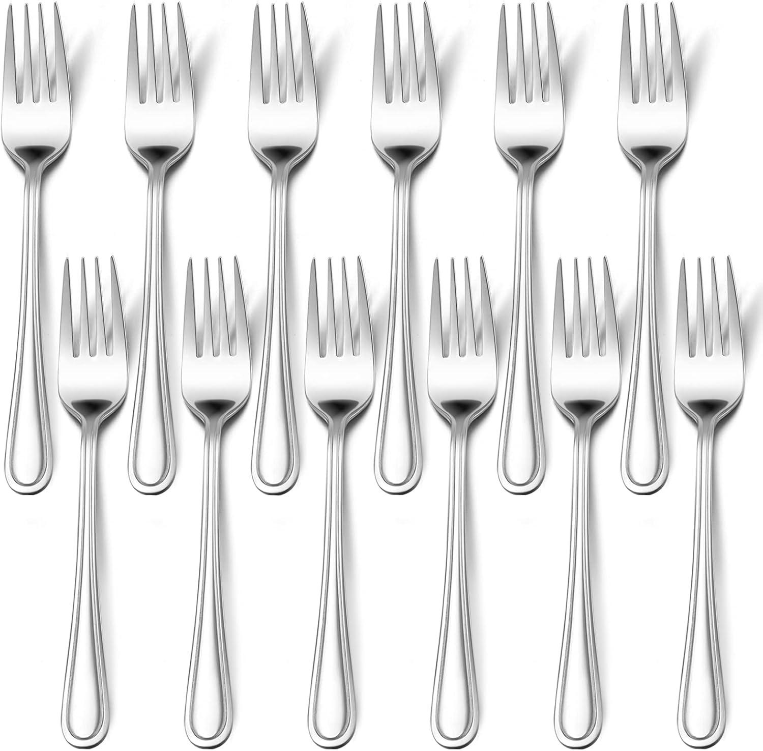 Salad Forks Set of 12, E-far 6.7 Inch Stainless Steel Dessert Forks for Home, Kitchen or Restaurant, Non-toxic & Mirror Polished, Easy to Clean & Dishwasher Safe(6.7 Inches - Lines)