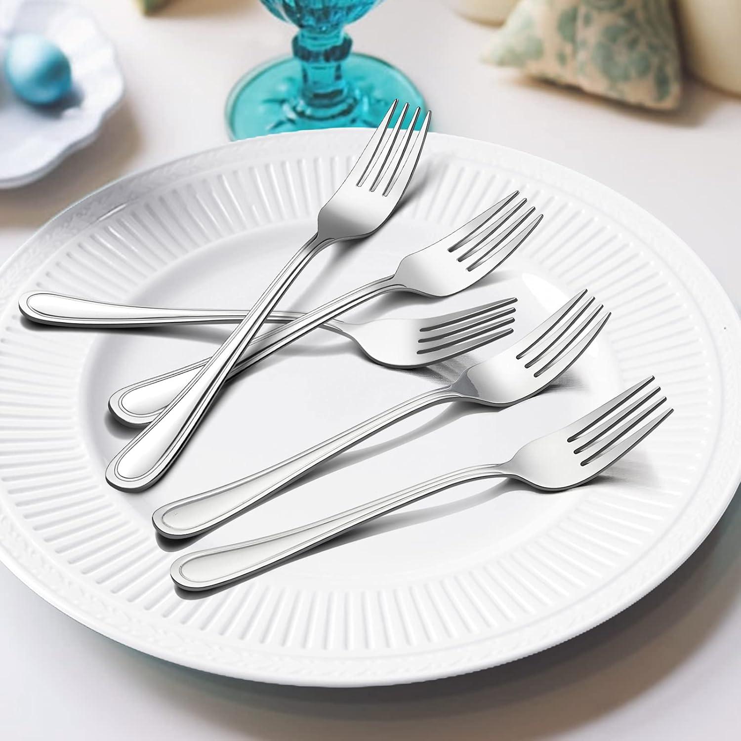 imageSalad Forks Set of 12 Efar 67 Inch Stainless Steel Dessert Forks for Home Kitchen or Restaurant Nontoxic ampamp Mirror Polished Easy to Clean ampamp Dishwasher Safe79 Inches  Lines