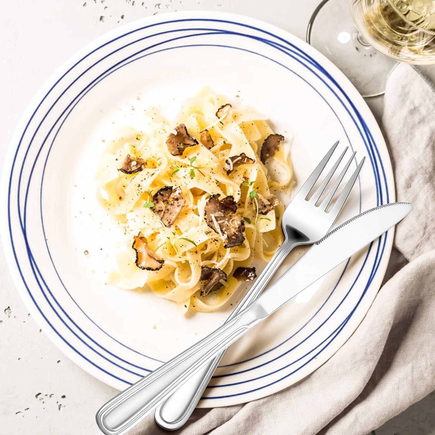 DURABLE – Thick and weighted steel is hard to bend, Four tine forks are sharp enough to pork food effortlessly, Solid and durable for many years, Easy to clean and dishwasher safe