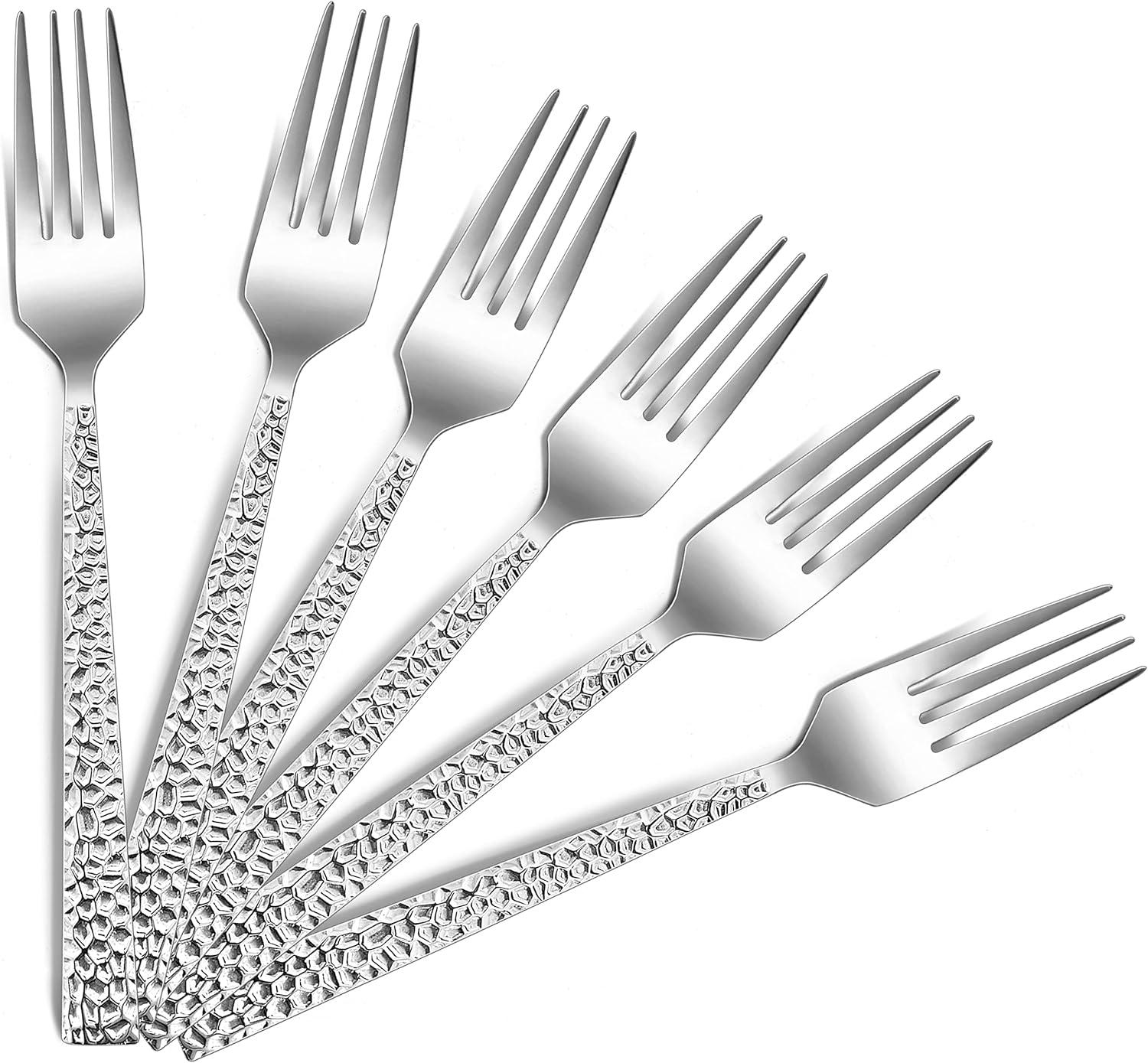 Salad Forks Set of 12, E-far 6.7 Inch Stainless Steel Hammered Dessert Forks for Home, Kitchen or Restaurant, Non-toxic & Mirror Polished, Squared Edge & Dishwasher Safe(6.7 Inches)