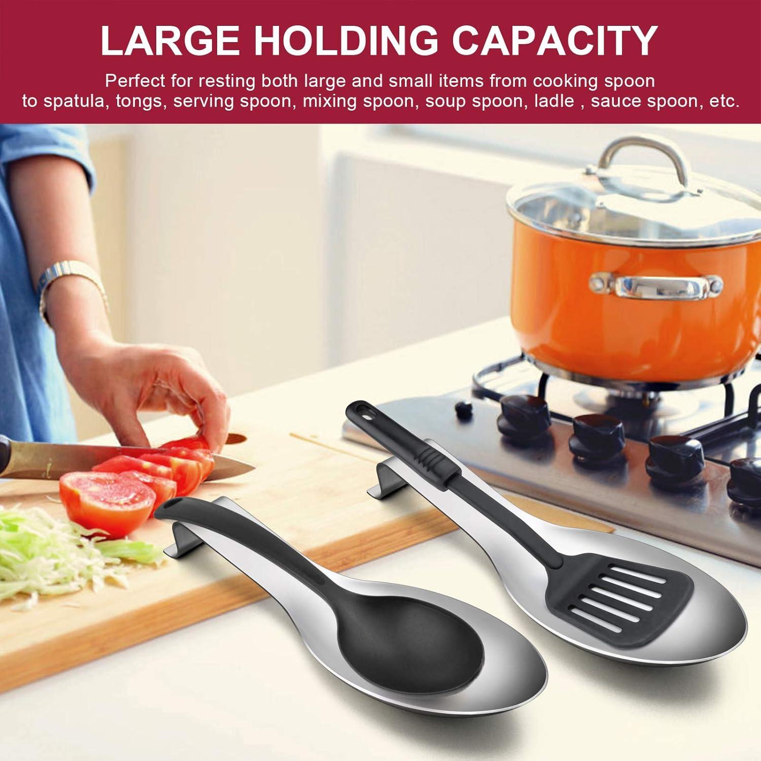 LARGE SIZE – Measured 9¼(L) x 3¾(W), Large holding capacity and wide enough for pretty much anything, Perfect for resting both large and small items from cooking spoon to spatula, tongs, serving spoon, mixing spoon, soup spoon, ladle, sauce spoon, etc.